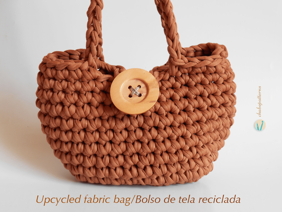 I still had two skeins left of upcycled fabric yarn to make a new free pattern. And so a second video tutorial working with this material is now completed, the XL upcycled fabric bag. It’s made using all of the yarn to make a big bag with good space for a summer outing or a nice picnic. It’s a simple design and construction, just three rounds to complete the base and then continuing with the same amount of stitches to make the bag rise. The straps at the end give it a nice touch and versatility. It’s also complemented with the written instructions and additional details if you decide to make one yourself.